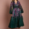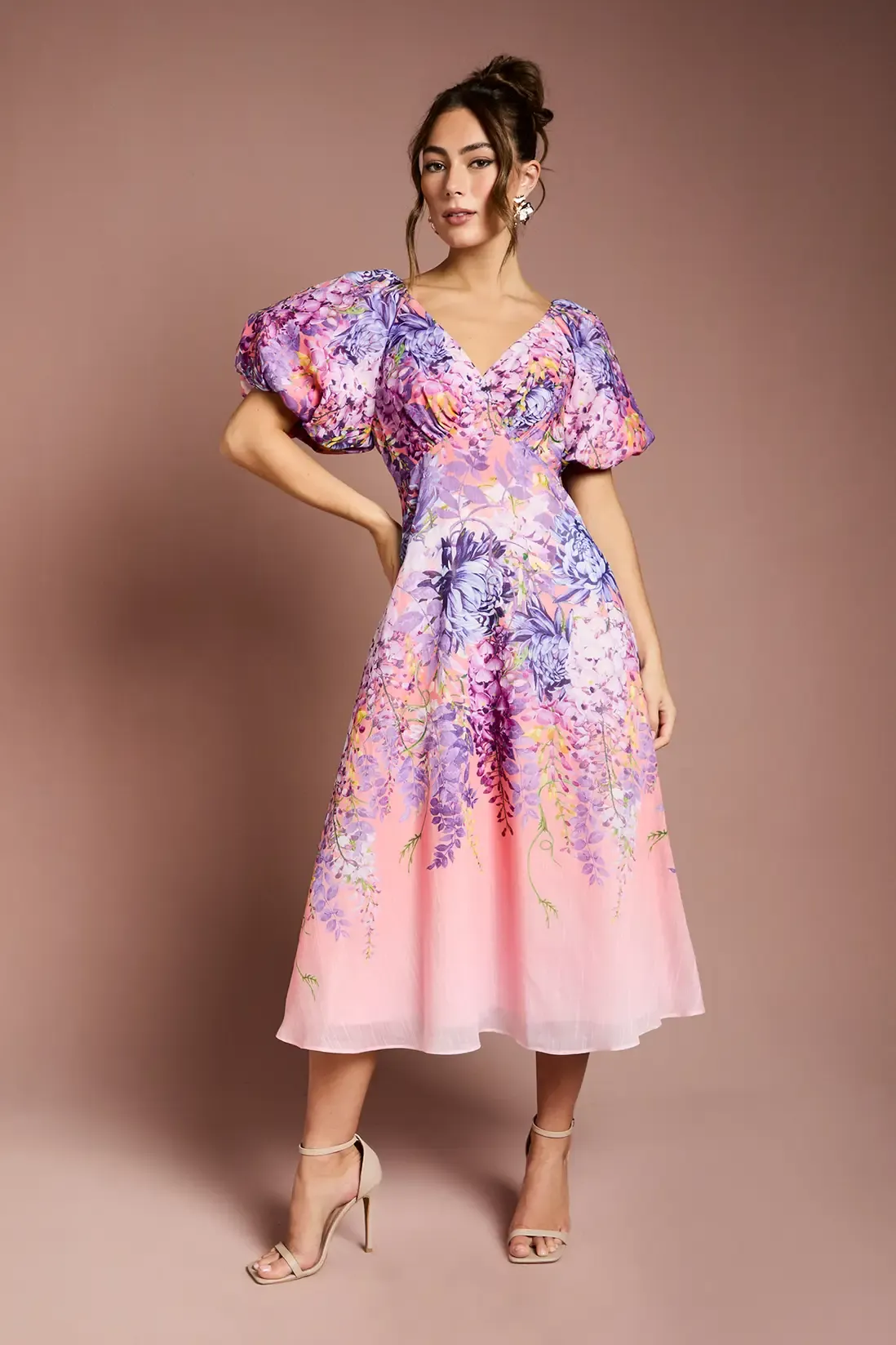 Damen Midi-Kleid aus Organza mit Blumenprint & Puffärmeln – Elegant