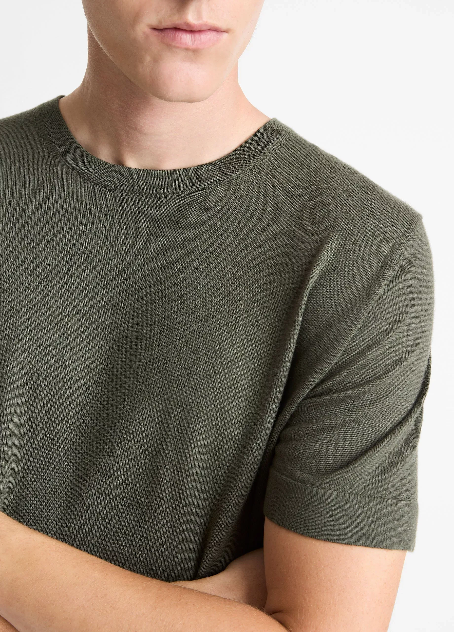 Dieser leichte Herren Kurzarm-Pullover aus einer feinen Mischung aus Merinowolle und Kaschmir fühlt sich angenehm weich auf der Haut an und eignet sich perfekt für die Übergangszeit. Der feine Strick sorgt für ein luftiges Tragegefühl, ohne an Form oder Struktur zu verlieren. Ideal für Tage, an denen ein T-Shirt zu kühl und ein dicker Pullover zu warm ist.