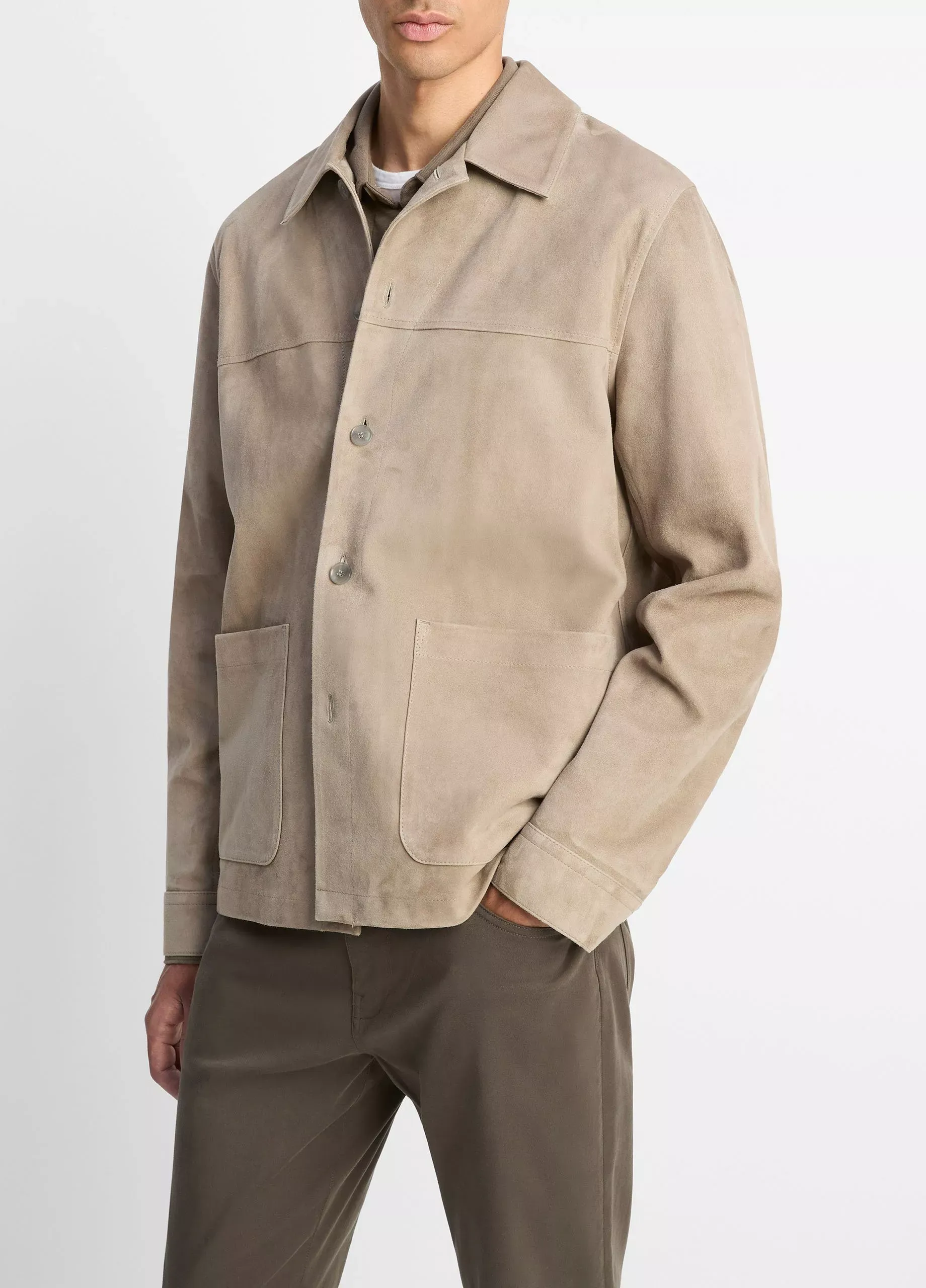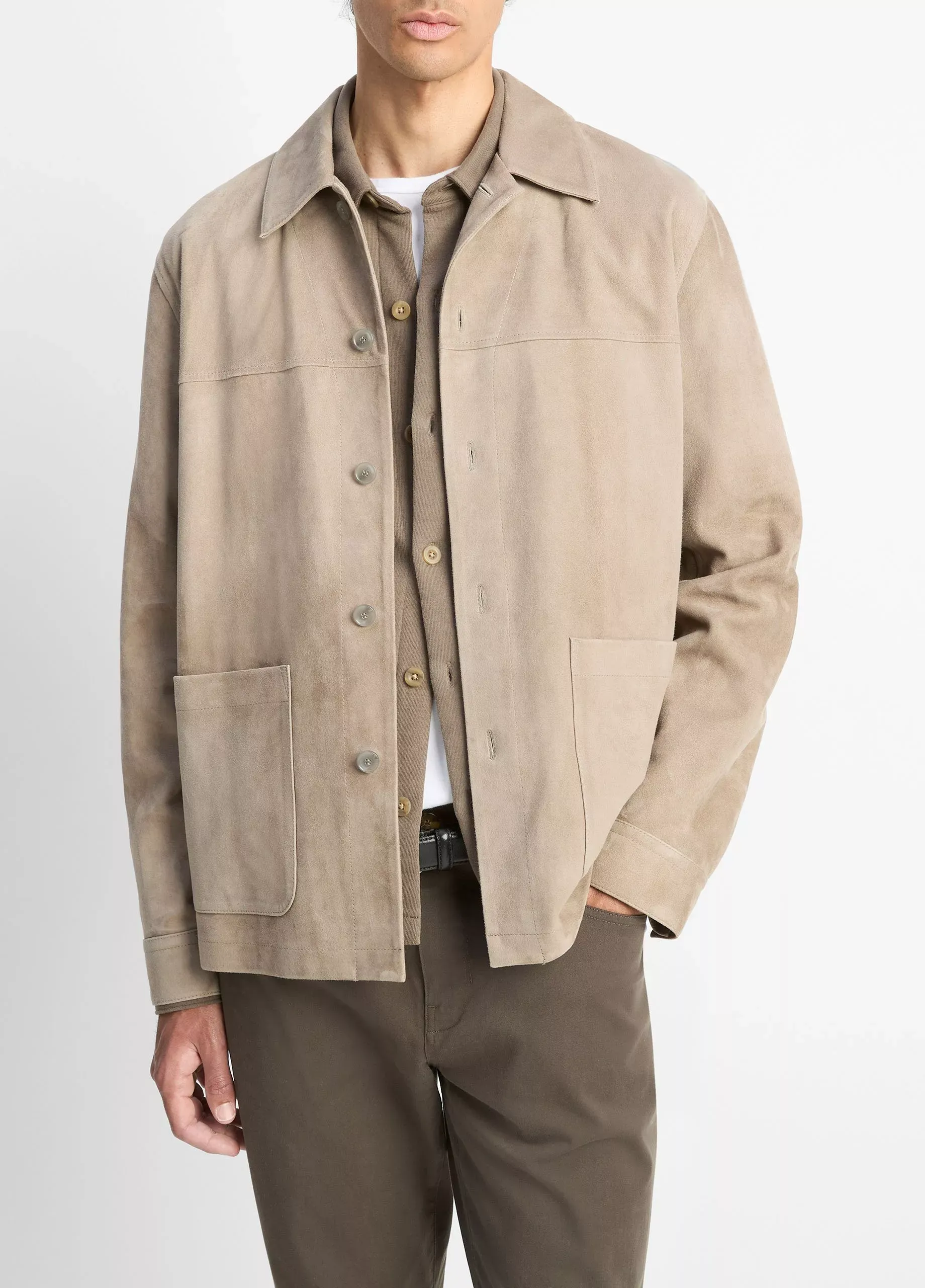 Diese Herren Hemdjacke aus feinem Wildleder aus Lammleder überzeugt durch ihre weiche Haptik und ihren zeitlosen Look. Das hochwertige Leder fühlt sich besonders geschmeidig an und wird mit der Zeit sogar noch weicher. Die schlichte Gestaltung in einem neutralen Farbton macht die Jacke vielseitig kombinierbar und sorgt dafür, dass sie auch in kommenden Saisons modern bleibt.