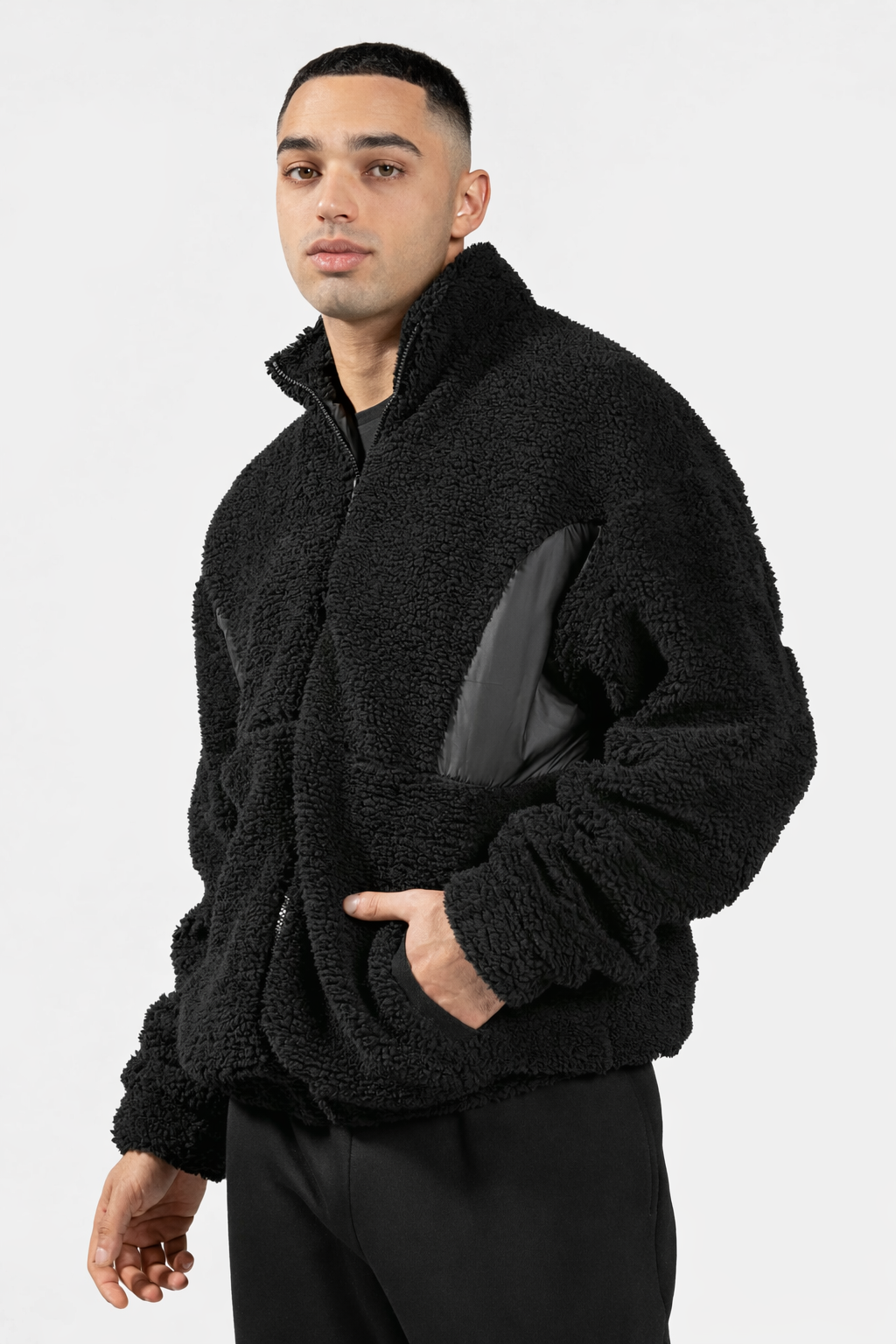 Lass dich von der weichen Teddy Jacke in Schwarz verzaubern, die dir an kalten Tagen sowohl Wärme als auch Stil bietet. Aus hochwertigem, flauschigem Teddy-Fleece gefertigt, schmiegt sich die Jacke angenehm an deinen Körper und sorgt dank der warmen Fütterung für ein kuscheliges Tragegefühl. Der hohe Kragen schützt dich zuverlässig vor Wind und Kälte und gibt der Jacke ihren coolen, modernen Touch.